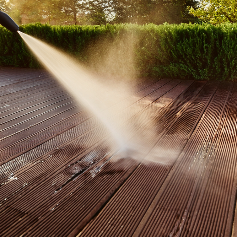 Auch Holzterrassen, Zäune oder Gartenmöbel reinigen wir gründlich und bringen sie wieder in frisches Aussehen!